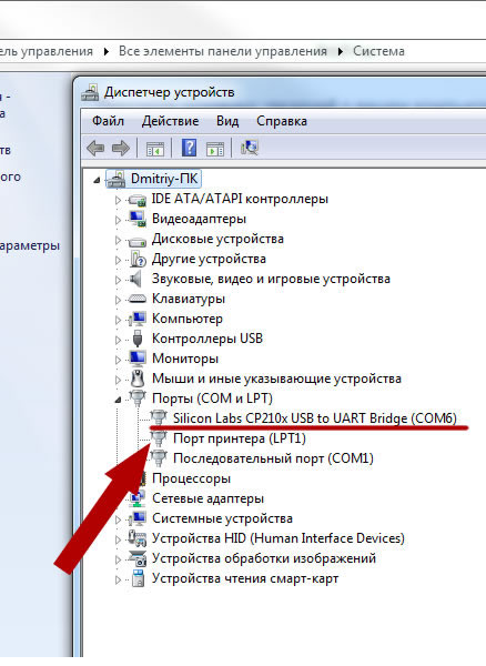 - Выбираем COM порт, на котором у вас определилось устройство (см. п.3)