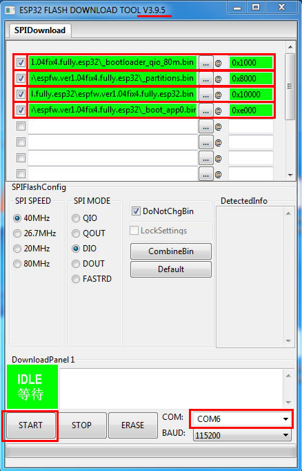 - Внимание! На некоторых модулях ESP32 для заливки прошивки, необходимо нажать кнопку BOOT на самой плате перед нажатием START в Flash Download Tools.