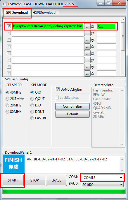 - BAUD ставим 115200 (921600) и после этого нажимаем кнопку S T A R T и ждем завершения операции