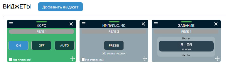 4. Создадим виджет "Форс", "Импульс" или "Задание" для управления реле.