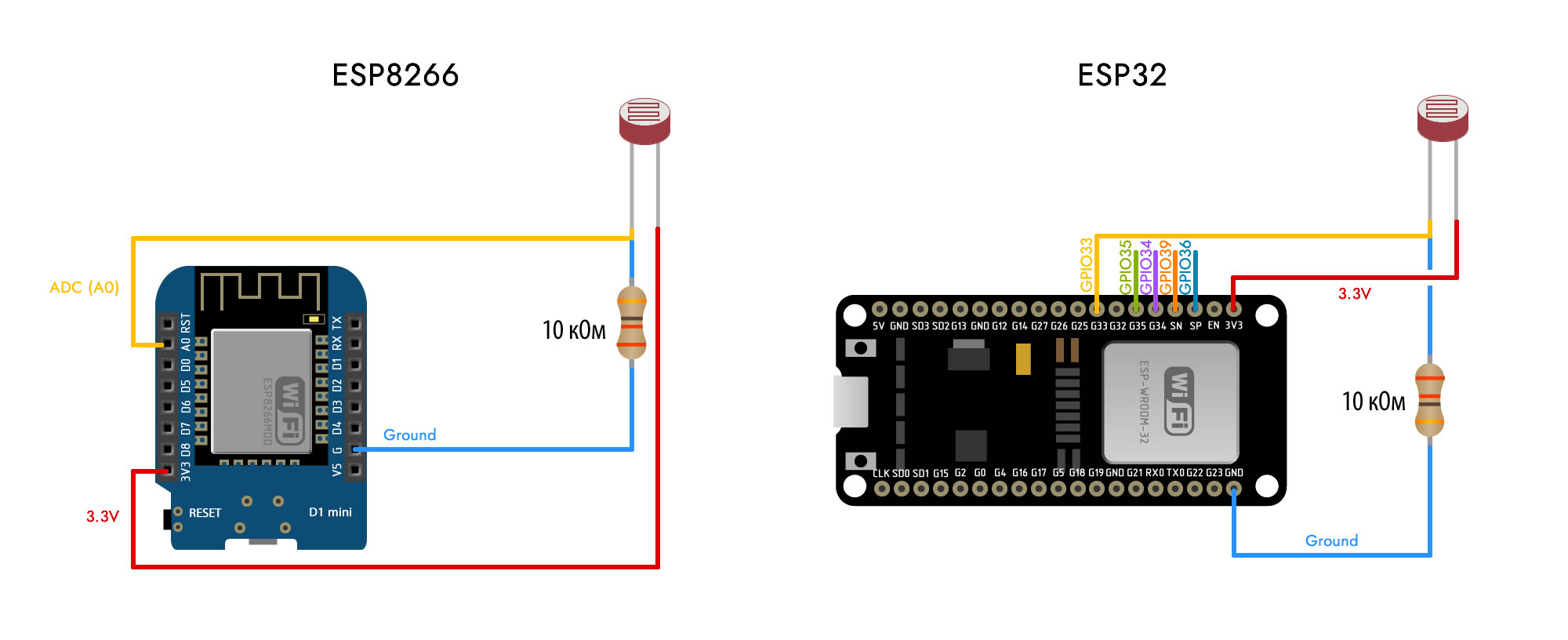 Рассмотрим подключение аналогового датчика к платам ESP32 и ESP8266.