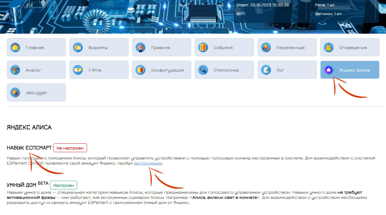 1. Откройте профиль https://control.espsmart.ru/alice.